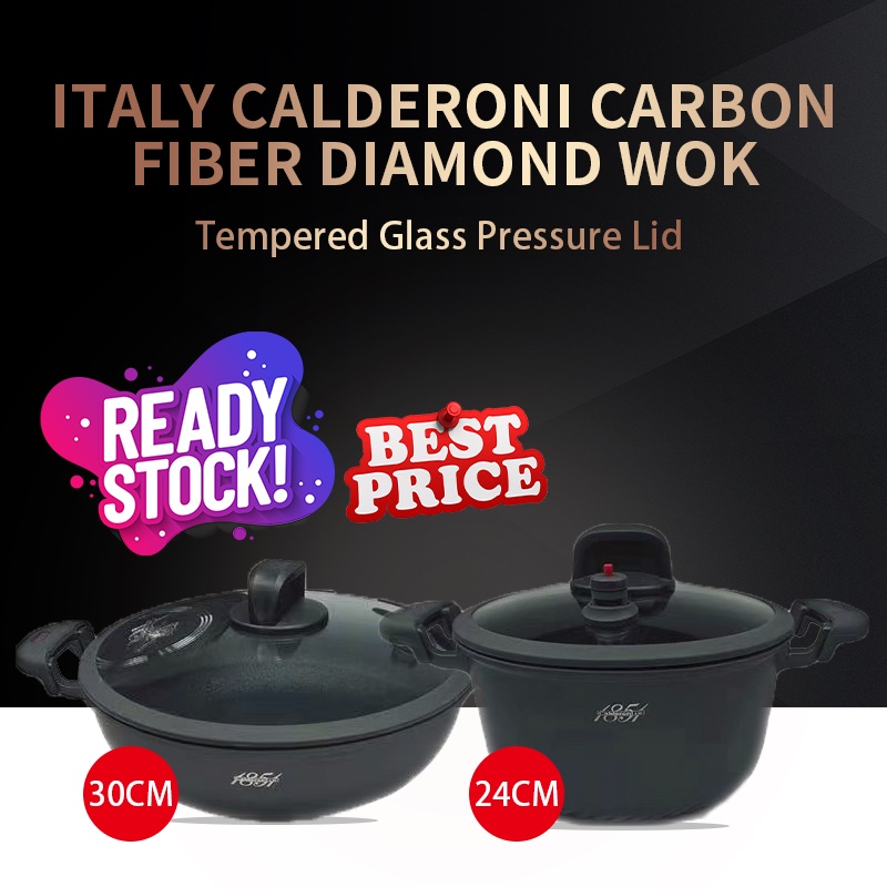 Stock Clerancebuy 1 Free 1 Italy Carbon Fiber Diamond Non Stick Wok Tempered Glass Pressure Lid Non Stick 不沾锅 Kuali Shopee Malaysia
