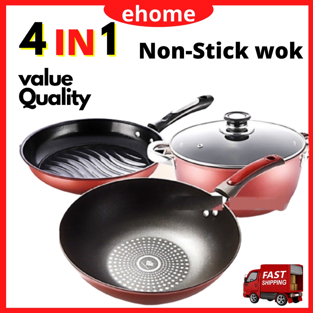Premium Set 4 In 1 Non Stick Kitchen Cookware Wok Set Kuali Periuk Memasak 33cm Pot 26cm Pan 26cm Cooker Shopee Malaysia